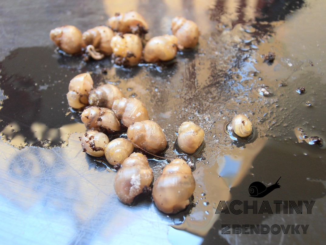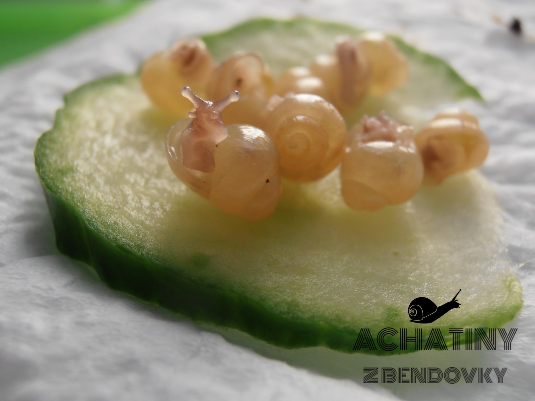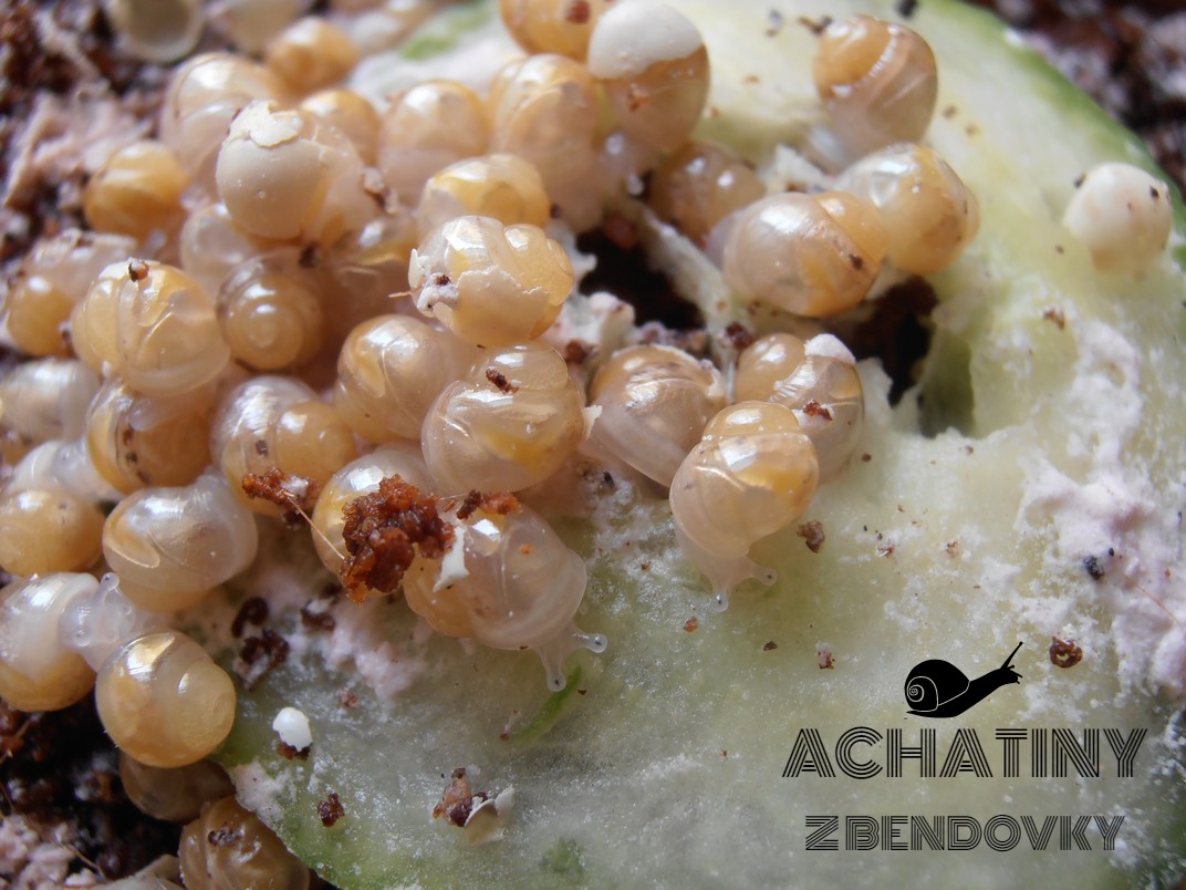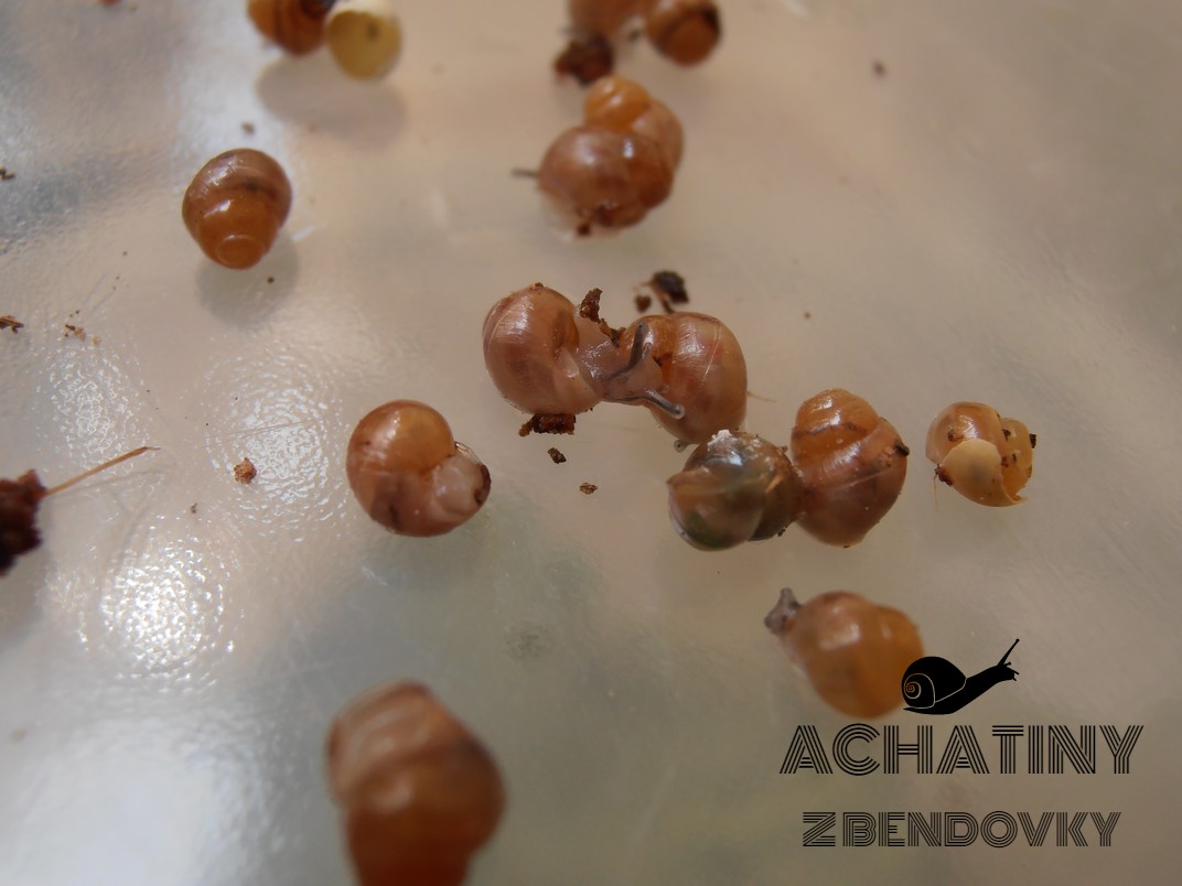 Všechny údaje o mírách šnečků ze snůšky jsou orientační (zaokrouhlené a zprůměrované - vždy se najdou větší i menší jedinci).